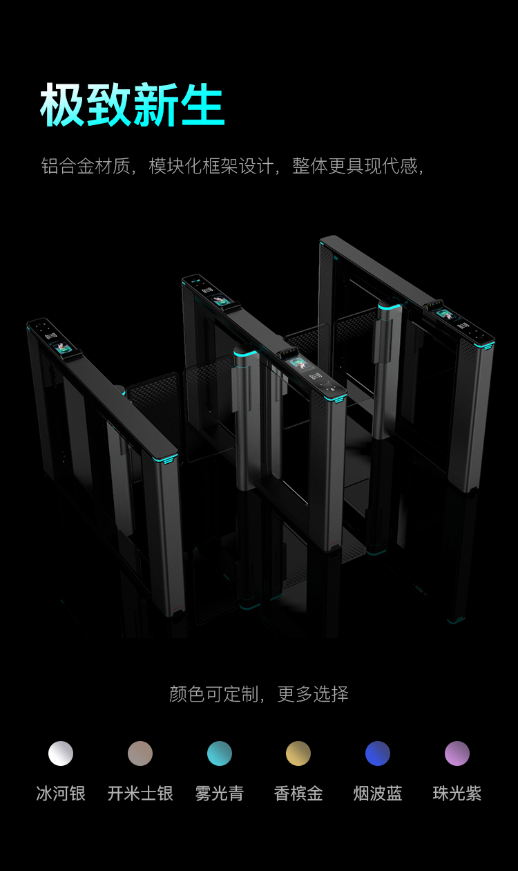 鐵軍智能-速通門(獵豹)高端旗艦,性能標(biāo)桿,重新定義人行通道閘 ,鋁合金開模拼裝結(jié)構(gòu),支持多種顏色定制。