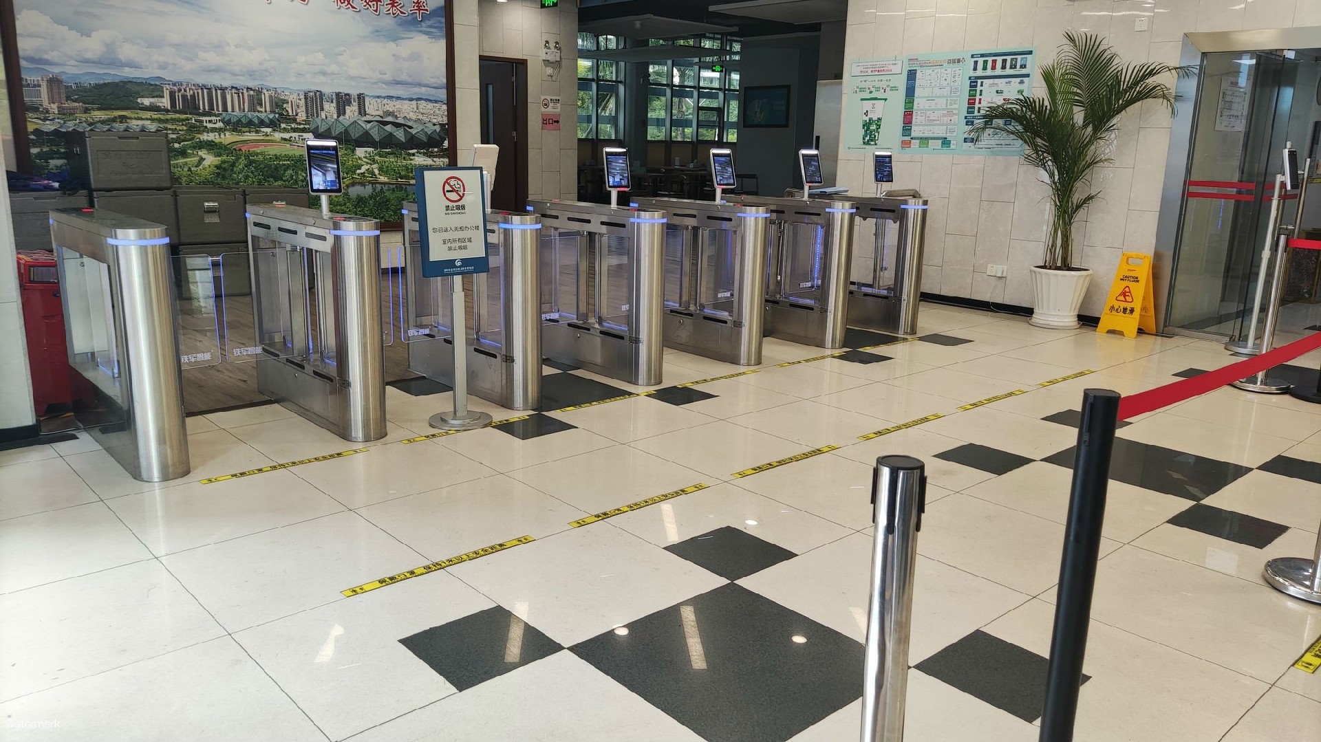 龍崗海關(guān)為讓關(guān)務(wù)員在機(jī)關(guān)辦公大樓實(shí)名制出行更便捷,在辦公大樓入口處安裝使用了深圳市鐵軍智能科技有限公司的測(cè)溫人臉識(shí)別身份核驗(yàn)系統(tǒng)+豪華小擺閘設(shè)備,關(guān)務(wù)員僅需刷“人臉”即可完成“實(shí)名制核驗(yàn)”和“體溫檢測(cè)”兩項(xiàng)操作。