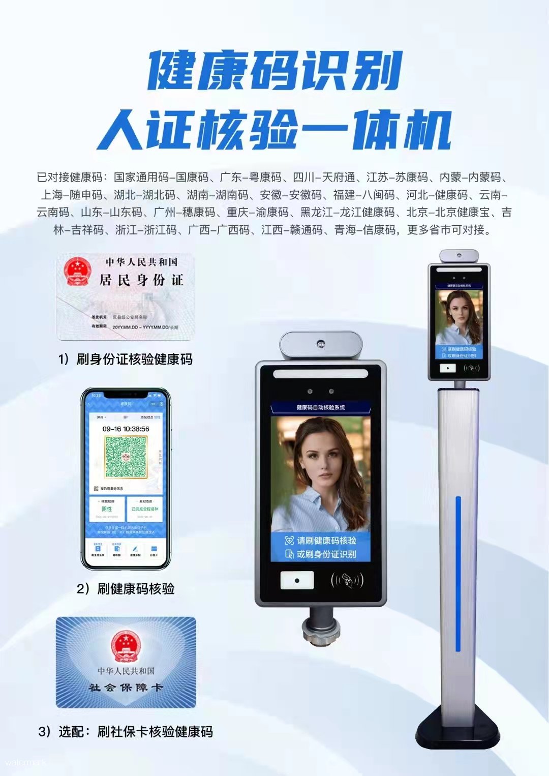 要是細心留意,你會發現“電子哨兵”正在悄悄的保護著我們。這是一臺測溫、通行一體化健康碼人臉核驗設備,通過掃描健康碼、核驗人臉或讀取身份證,可快速識別通行人員的實時體溫、健康碼狀態、核酸檢測結果和疫苗接種等信息。由于現疫情反復不斷,各大社區、工地、學校村口大廈和醫院等,“電子哨兵”也在他的崗位上發出亮閃閃的光芒;這不僅減輕了出入口工作人員的工作量,也大大提高了市民個人信息的安全性,快速助力防疫管理系統......