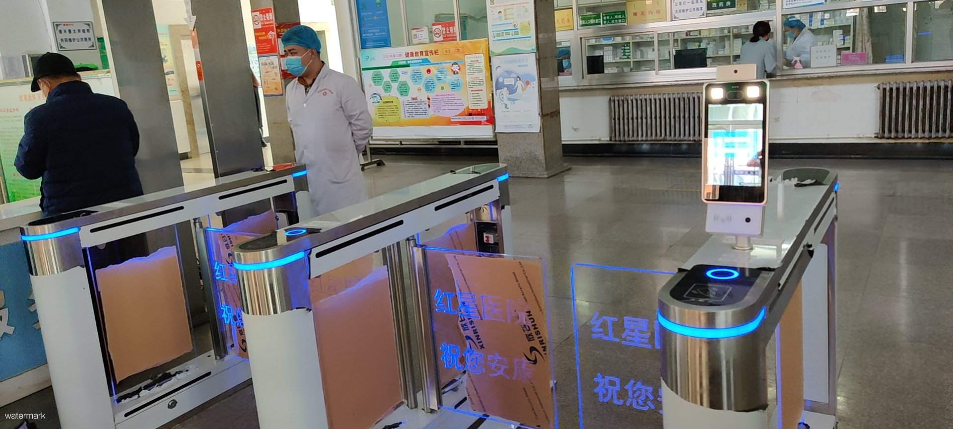 通遼市紅星醫院為有效提高醫務工作者“護佑生命”的時間”,選用了深圳市鐵軍智能科技有限公司國康碼核驗一體機產品。在醫院門診出入口處替代了人工測溫分診,將疑似發熱和體溫正常的人員進行分隔,“鐵軍智能”國康碼核驗一體機可完全替代人工分診,不僅測溫速度快,且測溫更準確,并能夠有效的減少醫務工作者的投入和交叉感染的風險。