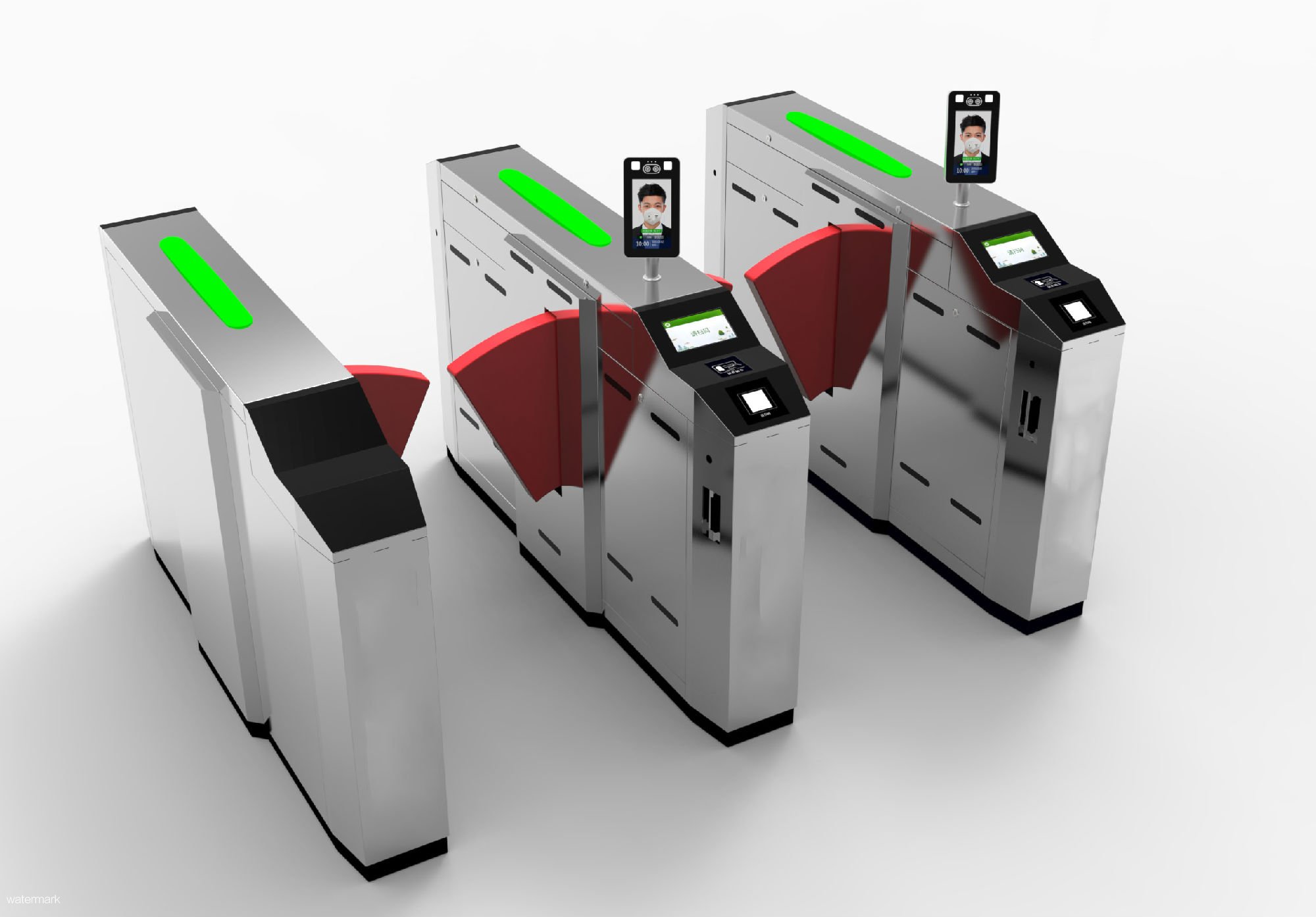 “鐵軍智能”通道閘系列產品可集成人臉識別、體溫檢測、口罩識別、門禁考勤、身份核驗、人臉采集活體檢測等功能于一體,可為校園、醫院、企事業單位等的出入口、食堂、宿舍樓、教學樓、門診樓等測溫考勤、身份核驗,同時避免因排隊測溫、指紋打卡等引起的交叉感染,還能有效篩查體溫異常人員信息