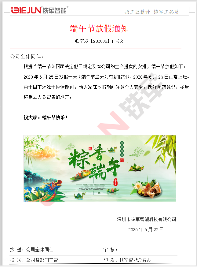 關于端午節放假通知!
