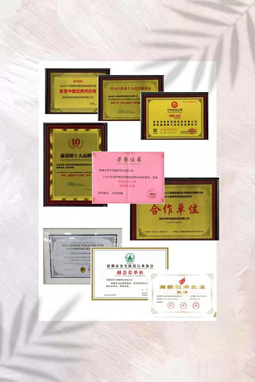 “鐵軍智能”先后榮獲“中國安防行業優質供應商”,“中國通道行業優選品牌”,“深圳市安全防范行業協會副會長單位”,“通道閘十大品牌”,“智慧中國優質供應商”,“2020智慧城市建設推薦品牌”等榮譽。