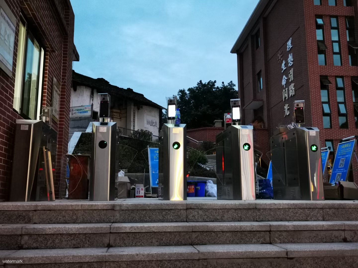 自貢市光大街小學在校園入口處,安裝了深圳市鐵軍智能科技有限公司的測溫人臉識別斜八角翼閘設備,用于提升日常疫情防控及記錄學生到校情況。