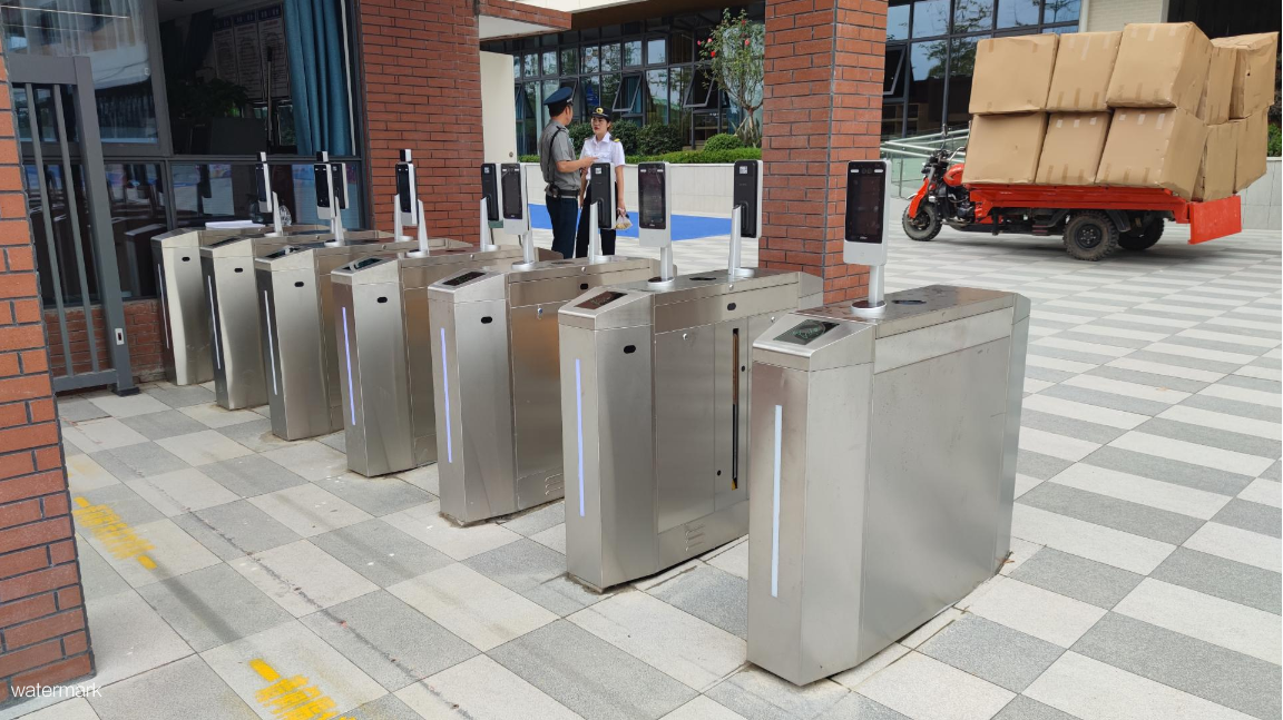 項目名稱:四川省綿陽市富樂國際學校——測溫人臉識別豪華斜八角翼閘項目