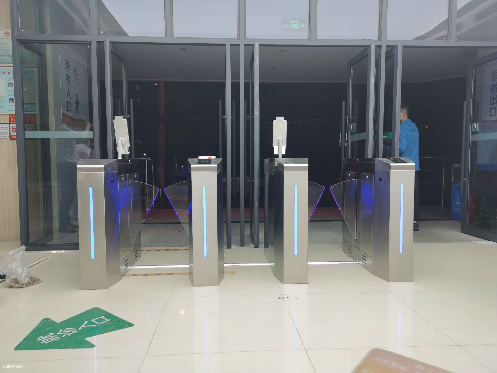 武漢市精神衛生中心于今年5月份應用了深圳市鐵軍智能科技有限公司國康碼人臉識別測溫翼閘一體式多功能門禁設備。