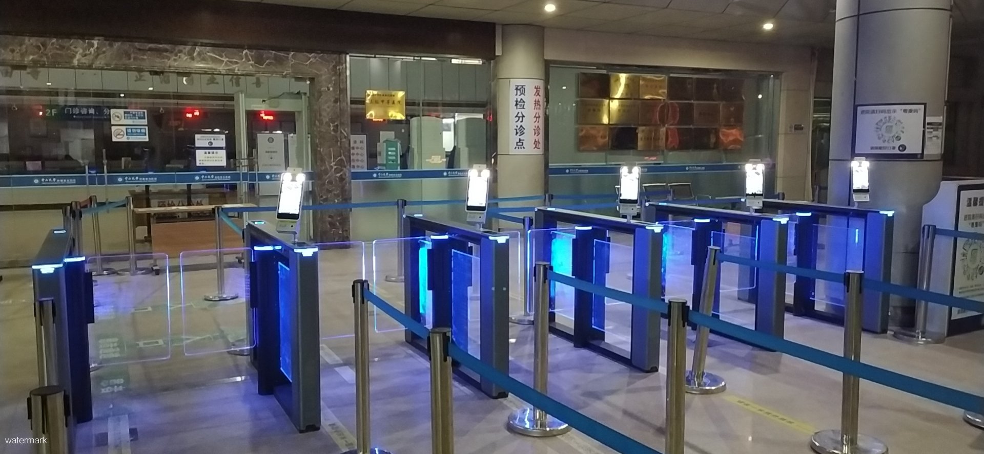 中山大學附屬第五醫院在醫院預檢分診處使用了深圳市鐵軍智能科技有限公司自主研發的獵豹速通門設備,作為抗疫戰場上的“第一道關卡”,承擔著非常艱巨的“阻擊”任務。