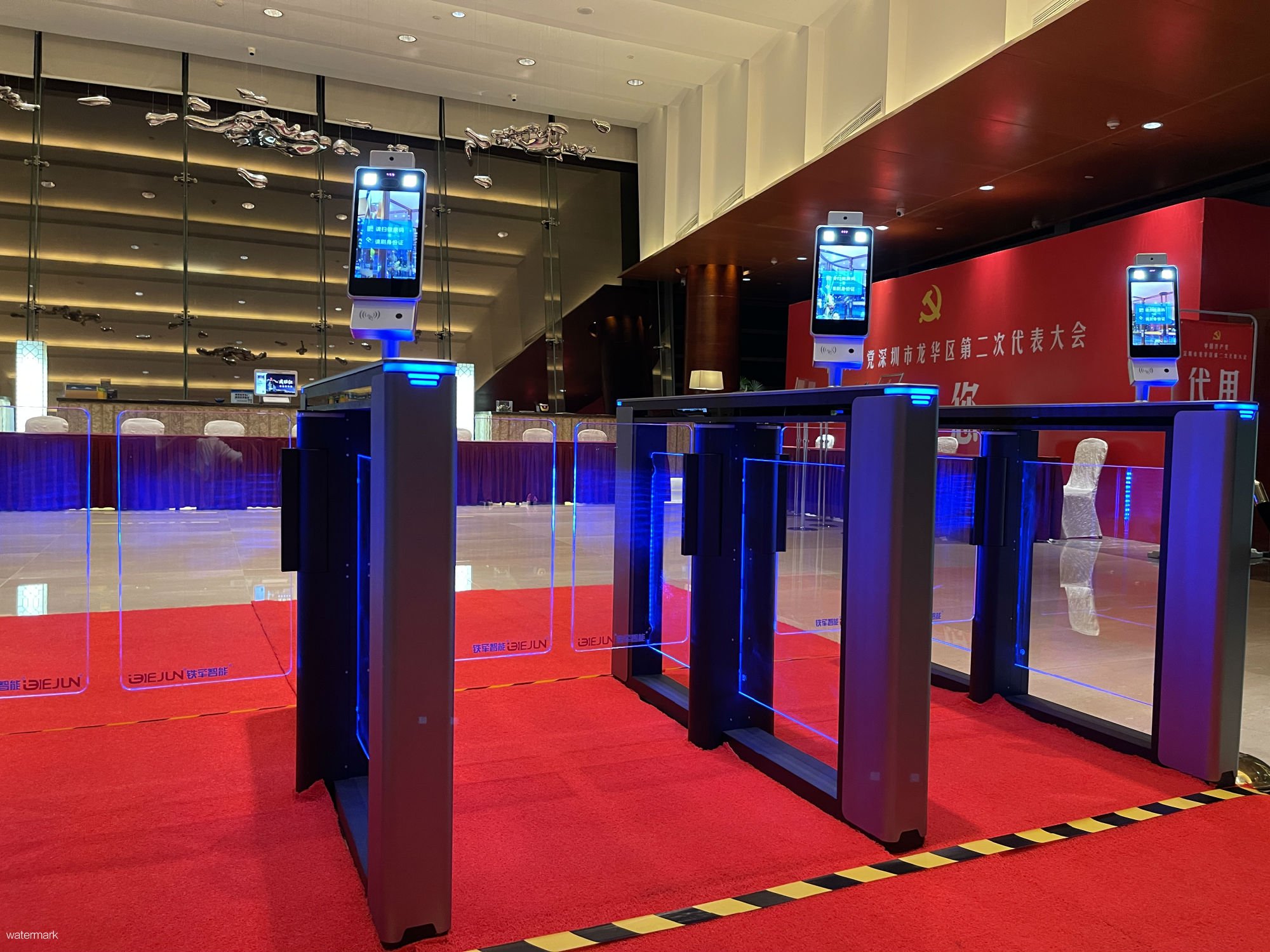 深圳觀瀾格蘭云天國際酒店為進一步做好常態化疫情防控工作,優化旅客入住體驗,在入口處安裝啟用了深圳市鐵軍智能科技有限公司的疫情防控智能獵豹速通門閘機。