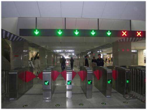 (1)剪式門常用于軌道交通,常見的剪式門大多出現在地鐵等場所。門翼從箱體內部伸出,可對通道進行有效封閉,起到出入控制的作用。另外,門體內部裝有紅外感測裝置,可實現人員“一人一卡:單次通行的目的。