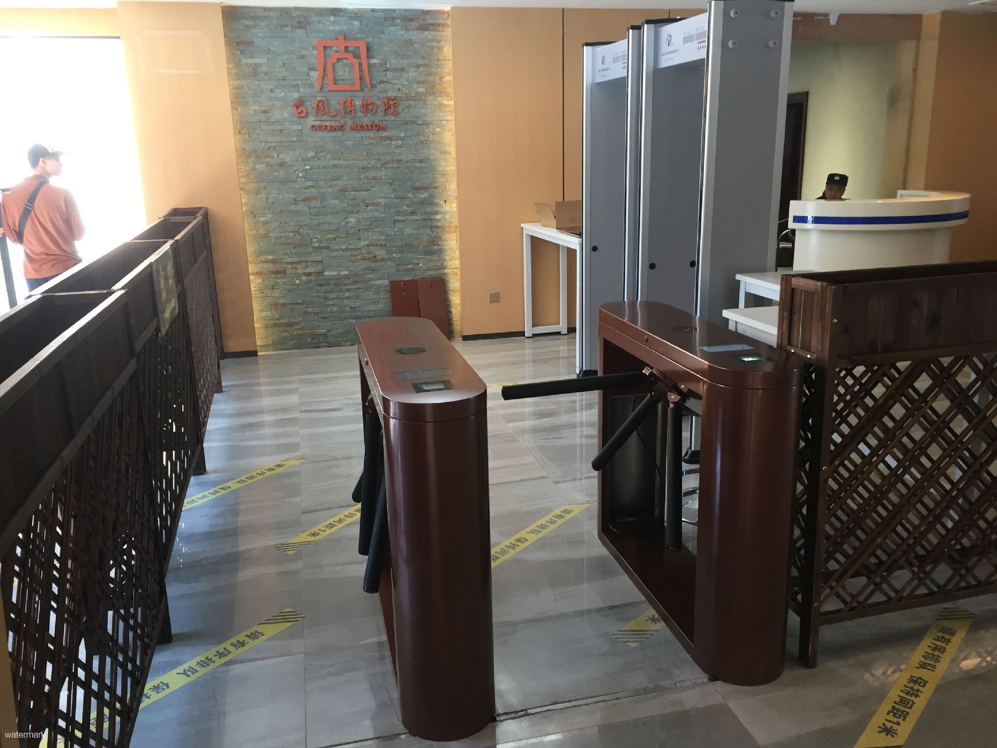古風(fēng)博物院檢票口入口處采用深圳市鐵軍智能生產(chǎn)的高端定制烤漆票務(wù)三輥閘,票務(wù)三輥閘烤漆定制,它的色澤鮮艷便于造型,具有很強的視覺沖擊力,非常美觀時尚且防水性能極佳,抗污能力強,容易清理。比較適合外觀和品質(zhì)要求比較高,價位方面也相對較高,所以閘機(jī)的預(yù)算可要注意。